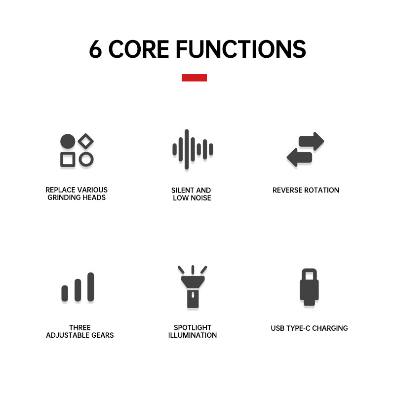 | Brand : None,ZJ-00MJQ001,ZJ-00MJQ001,Door-to-door delivery,Charging cable grinding head host,175g,White,Chinese manual/English Manual,TM JD YMX,Africa,Europe,South America,Southeast Asia,North America,Northeast Asia,Middle East,Yes,No,Ladies,Universal,Plastic,Easy to carry,Domestic,Household,Commercial |