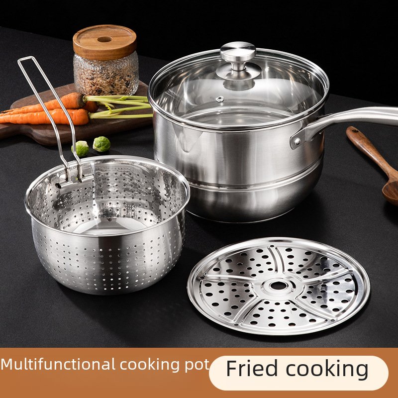 Multi bottom thickened stainless steel noodle pan noodle pan cooking pan frying pan tempura steaming and frying multi function pan
