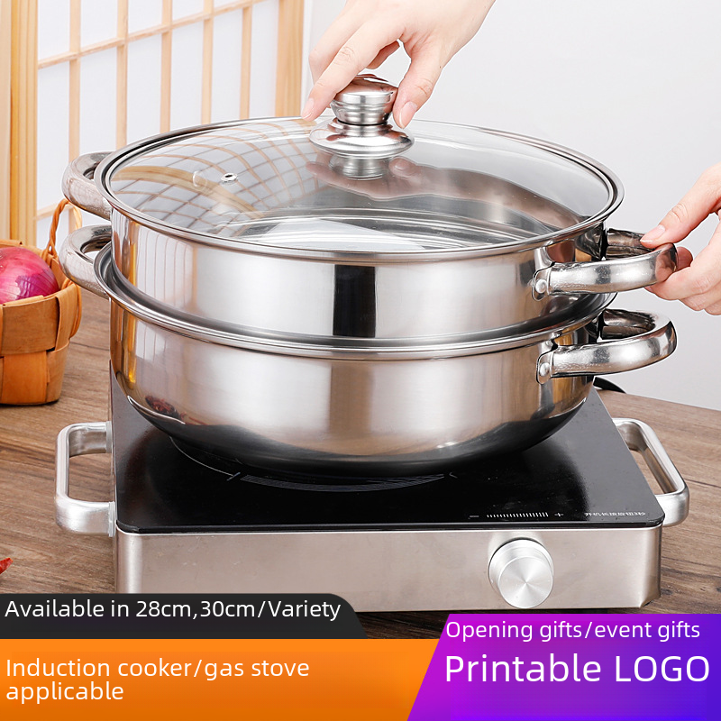Factory direct thick stainless steel soup steamer cross border double layer steamer single layer soup pot induction cooker gift pot