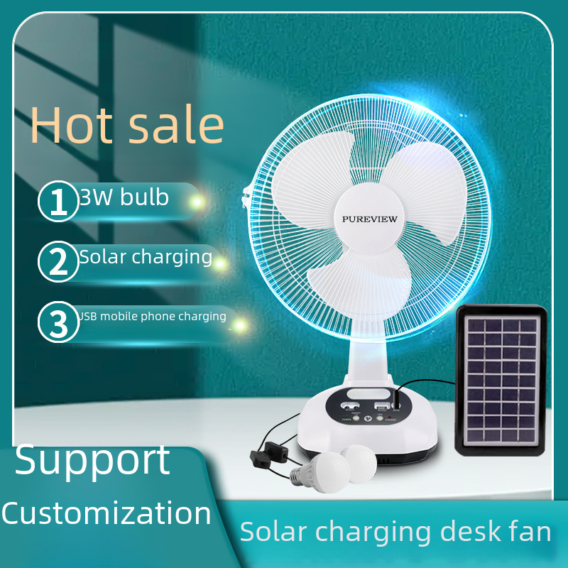 Explosions source factory 12 inch solar fan with light large wind charging fan set solar fan