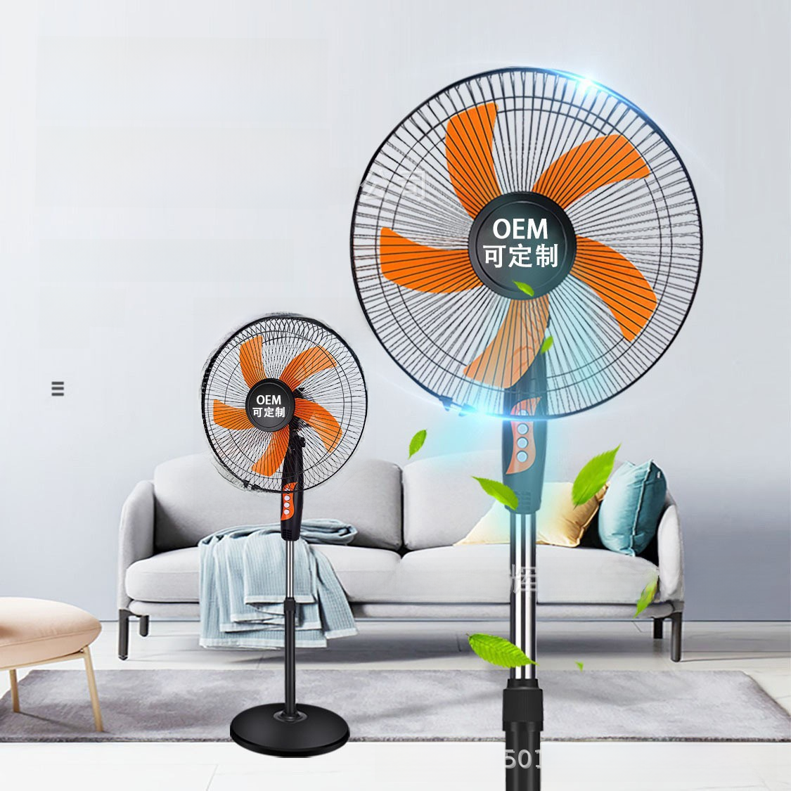 Electric fan 110V220V fan household floor fan 16 inch mute vertical small household appliances shaking head electric fan cross border
